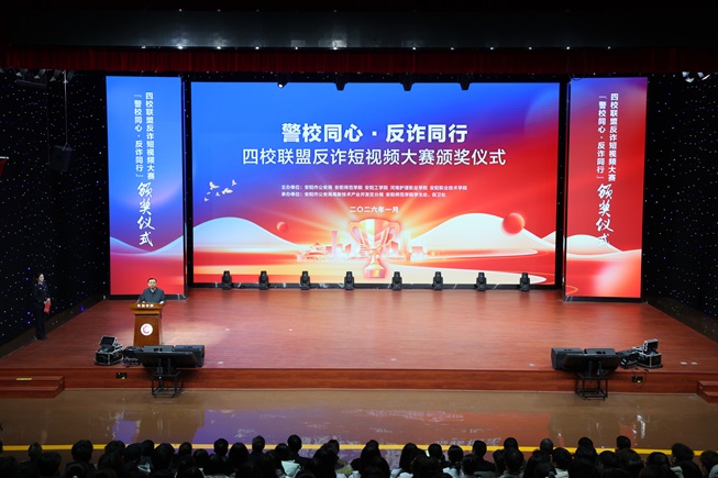 杨新宇在致辞中向市公安局及兄弟院校的大力支持表示感谢。他指出,此次大赛是警校联动深化校园安全教育、创新宣传模式的成功实践,广大学子以生动的镜头语言传递反诈知识,展现了青春智慧与责任担当。学校将继续深化与公安部门及兄弟院校合作,携手筑牢校园安全防线,共建共创“无诈校园”“平安校园”。